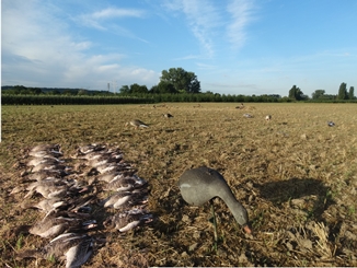 Die Gänsepopulation hat sich in Rheinland Pfalz etabliert und wächst ständig; dies führt nicht nur in der Landwirtschaft zunehmend zu Problemen. Gleichzeitig werden Gänse aus jagdlicher Sicht nach wie vor unternutzt. Doch wie, wo, welche, Arten zu erlegen sind, bedarf einer genauen Planung und gemeinsamen Durchführung. Am Seminartag werden nicht nur theoretische Tipps gegeben, sondern auch anschaulich das notwendige Lockequipment vorgeführt (u.a. Gänseliegen). Eine besondere Herausforderung bei der Gänsebejagung ist es, sich möglichst schnell aus der Gänseliege schussbereit zu machen. Dies wird auf dem Jagdparcoursstand im Neuhof (bei Kirchheimbolanden) geübt. Des Weiteren bekommen die Teilnehmer am Seminartag das Wurfscheibenschießen unter Anleitung eines erfahrenen Schützen näher gebracht. Flinten und Munition sind von den Seminarteilnehmern selbst mit zu bringen.
